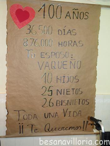 Si hoy María, la mujer del señor Tino “el Vaqueño” hubiera podido echar la vista atrás, si su centenaria mente hubiera conservado íntegros sus recuerdos pensaría ¡¡CIEN AÑOS!! , nunca lo hubiera creído. Una larga vida en la que ha habido de todo; trabajo, dolor, penas y penurias compensadas por esos diez hijos que parió y crió y que le han dado 25 nietos y 26 bisnietos.