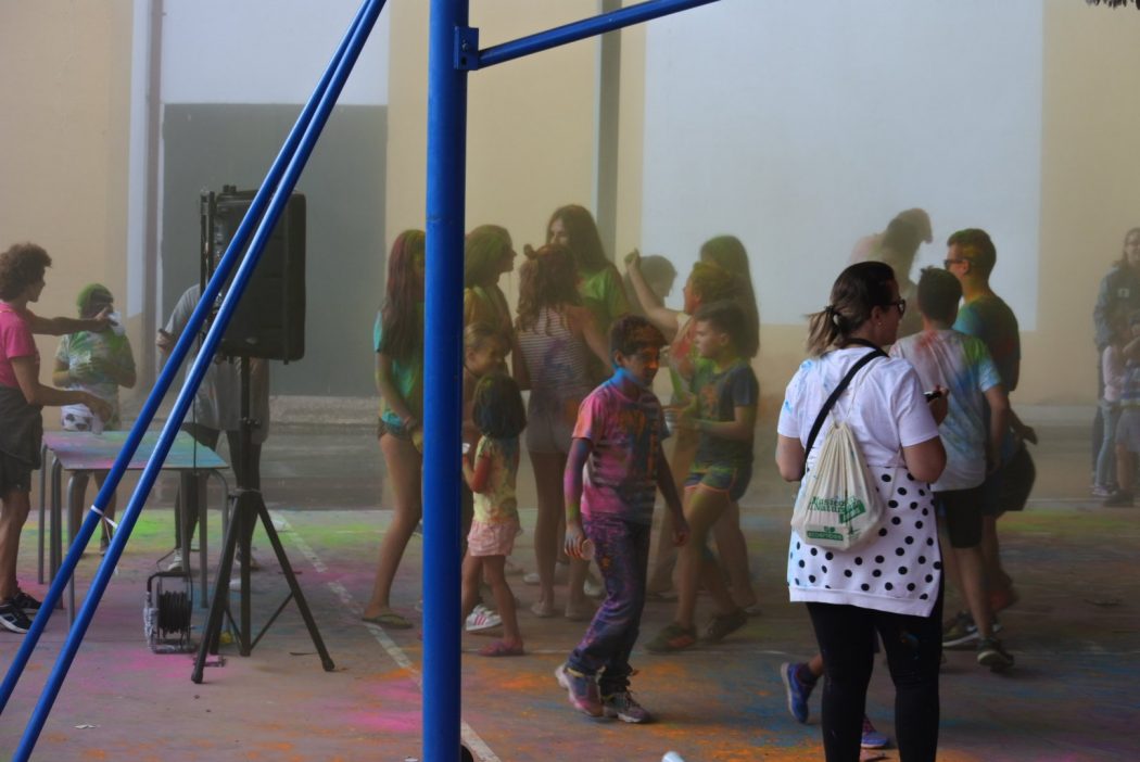 La primera color race de Villoria, que en un momento pensábamos podría ser suspendida a consecuencia del agua, acaba en diversión, bajo el techado del multiusos, polvos de colores inundan el ambiente haciendo pasar divertidos momentos a pequeños y no tan pequeños.