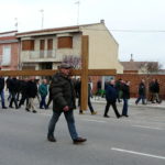 En Villoria celebramos dos actos, uno a las 9 de la mañana, para hombres en el que la devoción, solemnidad y el silencio reina de su paso, hombres del municipio realizan las 14 estaciones simbolizadas, portando al hombro cruces de madera, de manera penitencial.