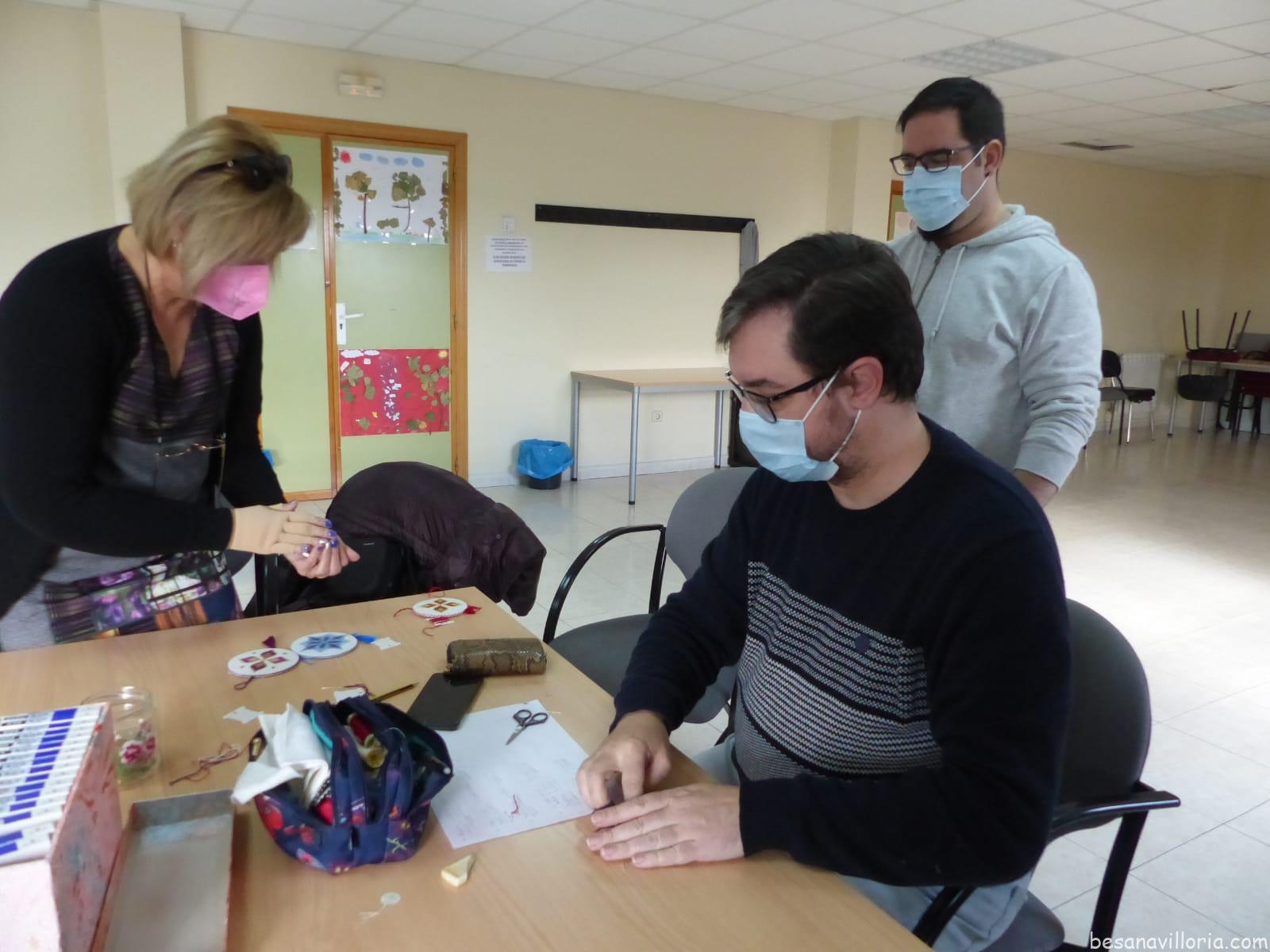 Esta mañana ha terminado el taller de adornos navideños bordados a hilo, que había sido programado por el Ayuntamiento como preludio de la Navidad. José y Sergio, de CAIRELES, han sido los maestros encargados de impartir las clases que han contado con varias mujeres de Villoria como alumnas.