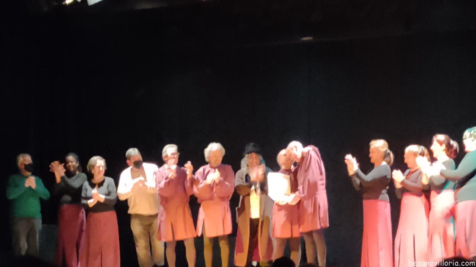 Ayer el teatro volvió a Villoria, y lo hizo por un motivo muy especial: el grupo Zaranda, nuestro grupo, celebraba sus 40 años sobre las tablas. Tras el parón provocado por la pandemia, hemos podido disfrutar una vez más de una actividad que ya echábamos en falta. Y a fe que lo hemos hecho gracias al magnífico trabajo realizado por Jesús María González, como director, a Yago Reis como maestro de ceremonias y al desparpajo y saber estar sobre el escenario de ese elenco de actores que hoy forman parte de Zaranda, encabezados por Sátur Villardón y excelentemente secundado por Félix Sierra, Pepi García, Agustín Sánchez , Marce San Juan, Dolores Arias, Beni González Martín, Mari Carmen González, Pepi Miguel y Cristina Tavera.