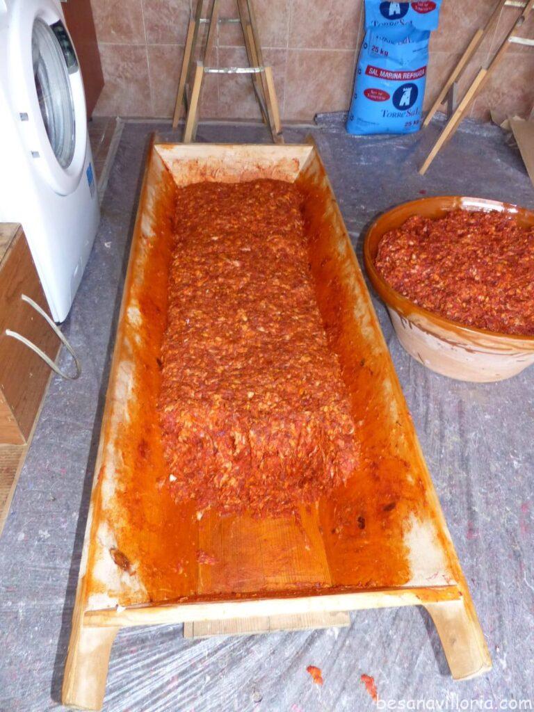 Según iban saliendo los chorizos se iban poniendo en los varales y colgando en lugares secos y fríos para su curación y conservación, cuidándolos mucho, a lo largo del invierno, para que no se afarolasen.