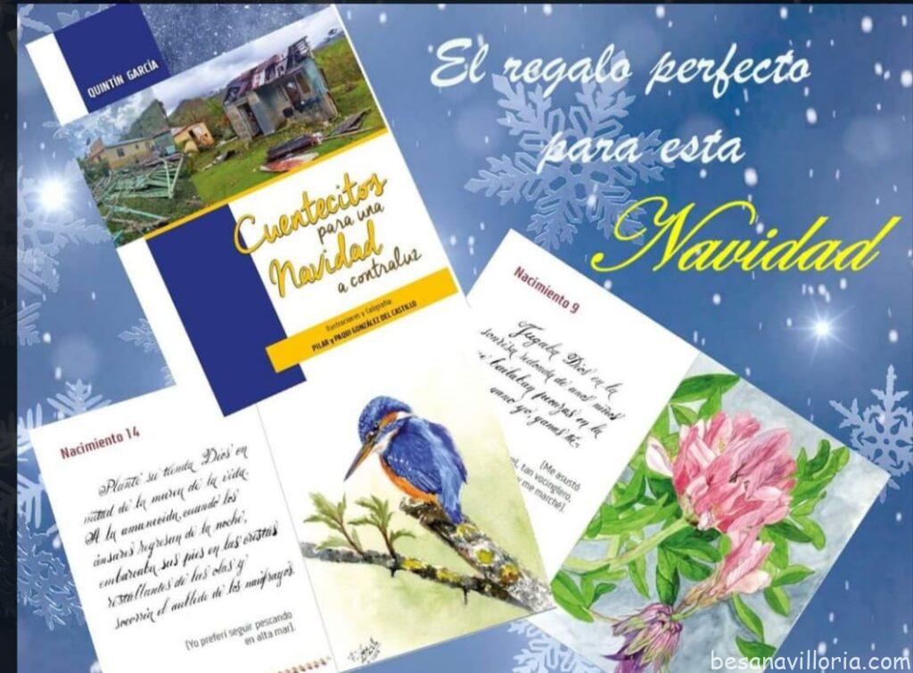 Pero este año tenía yo en mis manos un libro confeccionado artesanalmente por Pilar González del Castillo con pinturas y acuarelas suyas y unos textos míos en prosa poética referidos a la navidad, pero un poco a contra luz, a contracorriente de la visión tradicional y costumbrista. Eran unos textos que me habían premiado el año anterior en un certamen literario organizado por un grupo de Mujeres Escritoras de Madrid.