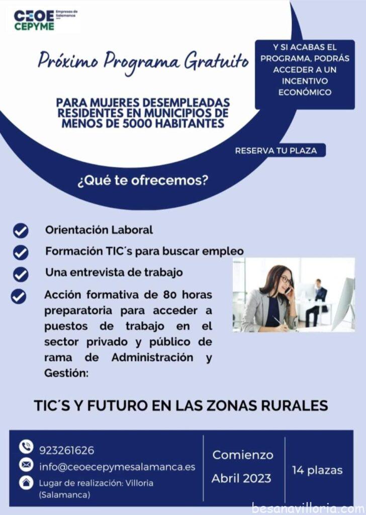 Curso que se desarrollará en Villoria, con incentivo económico a final del curso.