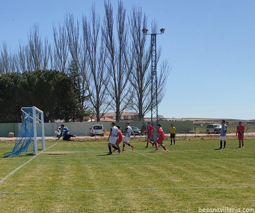 Una primera parte de dominio y buen juego de los locales, seguros atrás y llegando con peligro en varias ocasiones. Marcó Alberto en el minuto 15 tras una buena jugada por la banda. Empataron los visitantes en el minuto 42. Empate que pudo romper el F. C. Villoria en el último minuto, pero José marró el penalti señalado a su favor.