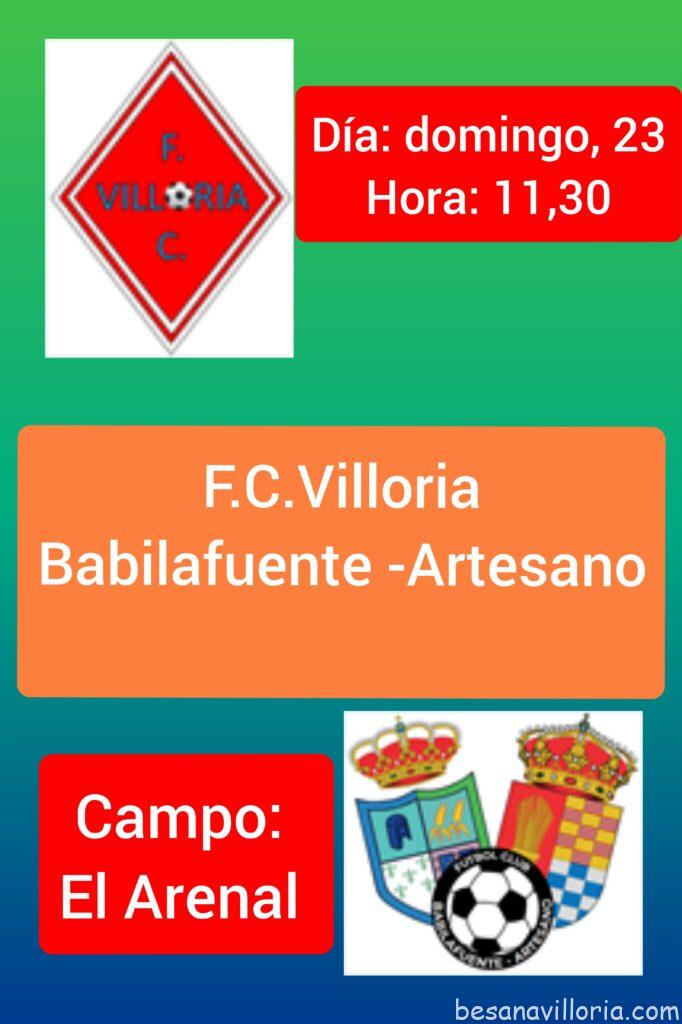 Por la mañana (11,30) podremos disfrutar, después de varios años, del derbi por excelencia en nuestra comarca: el F. C. Villoria, cuarto clasificado de lo que podíamos llamar la segunda división del torneo Futormes, recibe al Babilafuente -Artesano, que viene de alcanzar el subcampeonato en la división de honor del citado torneo, lo que les hace partir, a priori, como claros favoritos. Un partido en todo lo alto del que deseamos que gane el mejor y, por supuesto, que la deportividad reine por encima de todo.