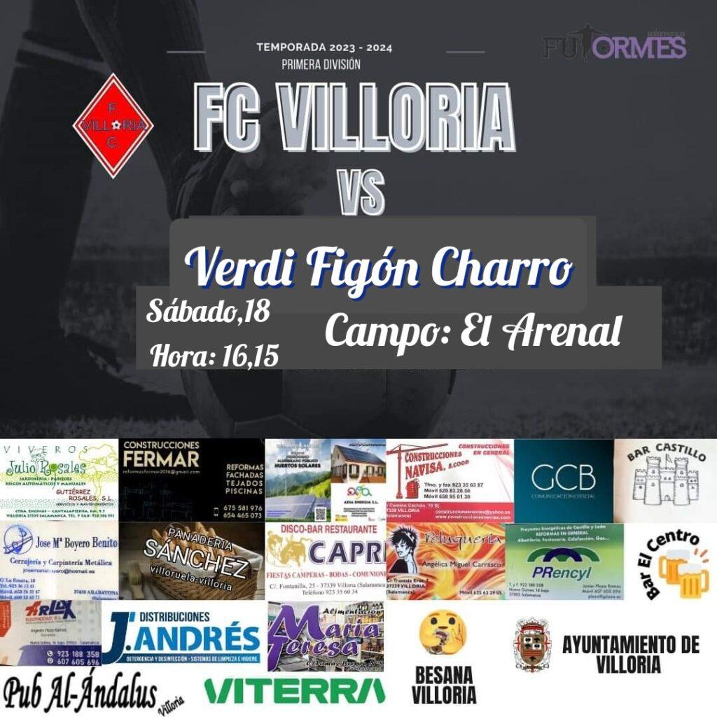 Partido interesante el que disputarán este sábado en el Arenal el F.C.Villoria (quinto clasificado con 17 puntos) y el Verdi Figón Charro (tercero en la tabla con 18 puntos).