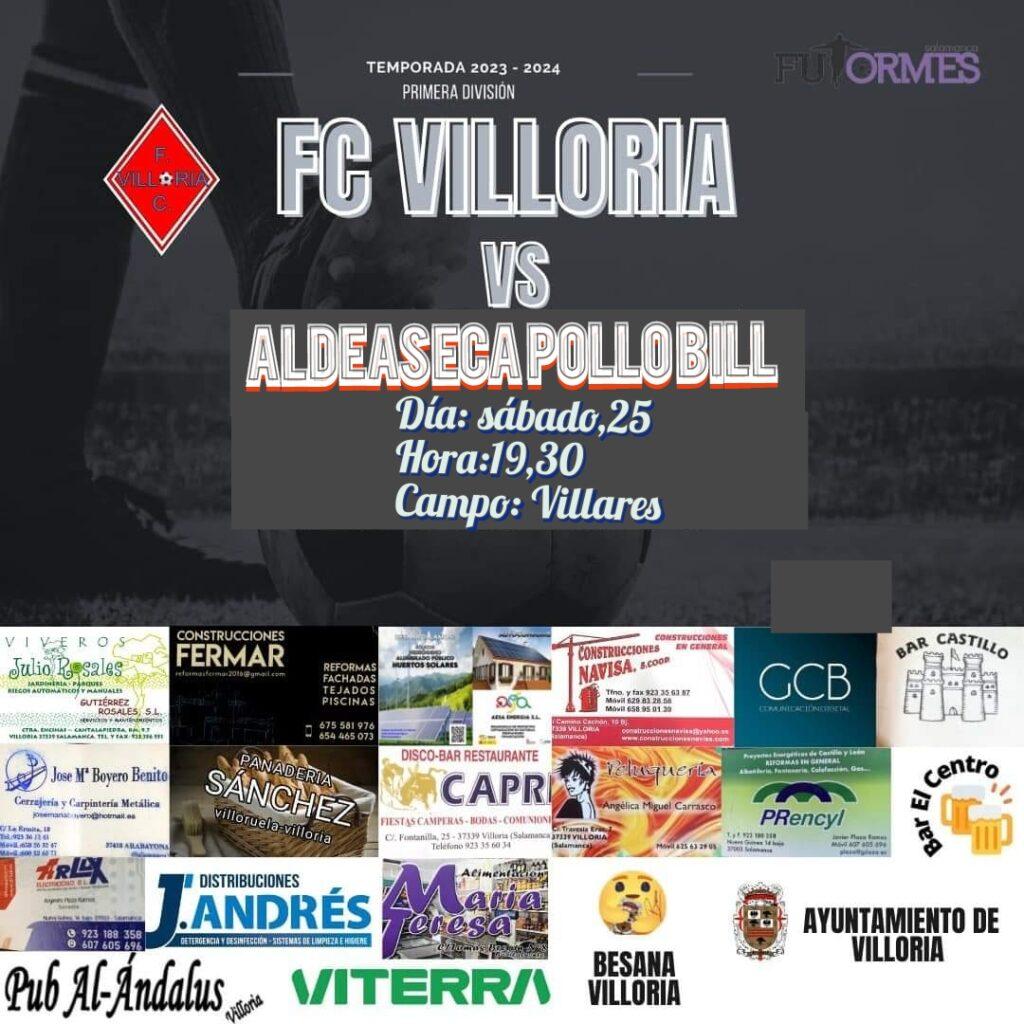 El F.C. Villoria se desplaza hasta los Villares para enfrentarse ante el Aldeaseca Pollo Bill, farolillo rojo de la clasificación con tan solo cuatro puntos.