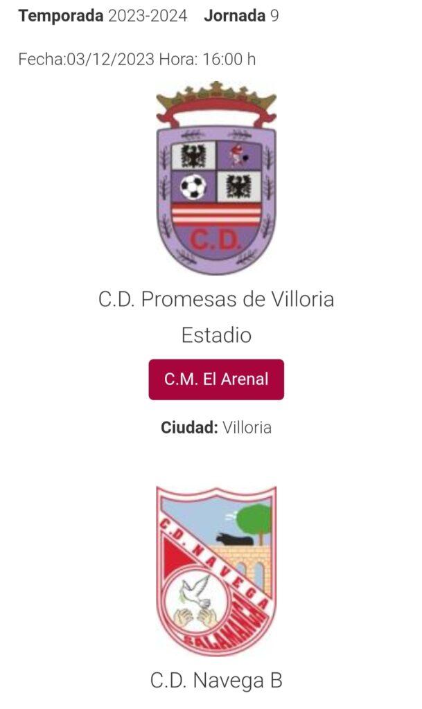 El Promesas Villoria recibe a una de los clásicos del fútbol base salmantino. El C.D.Navega B, sexto clasificado en la tabla, visita El Arenal mañana domingo a las 16,00.