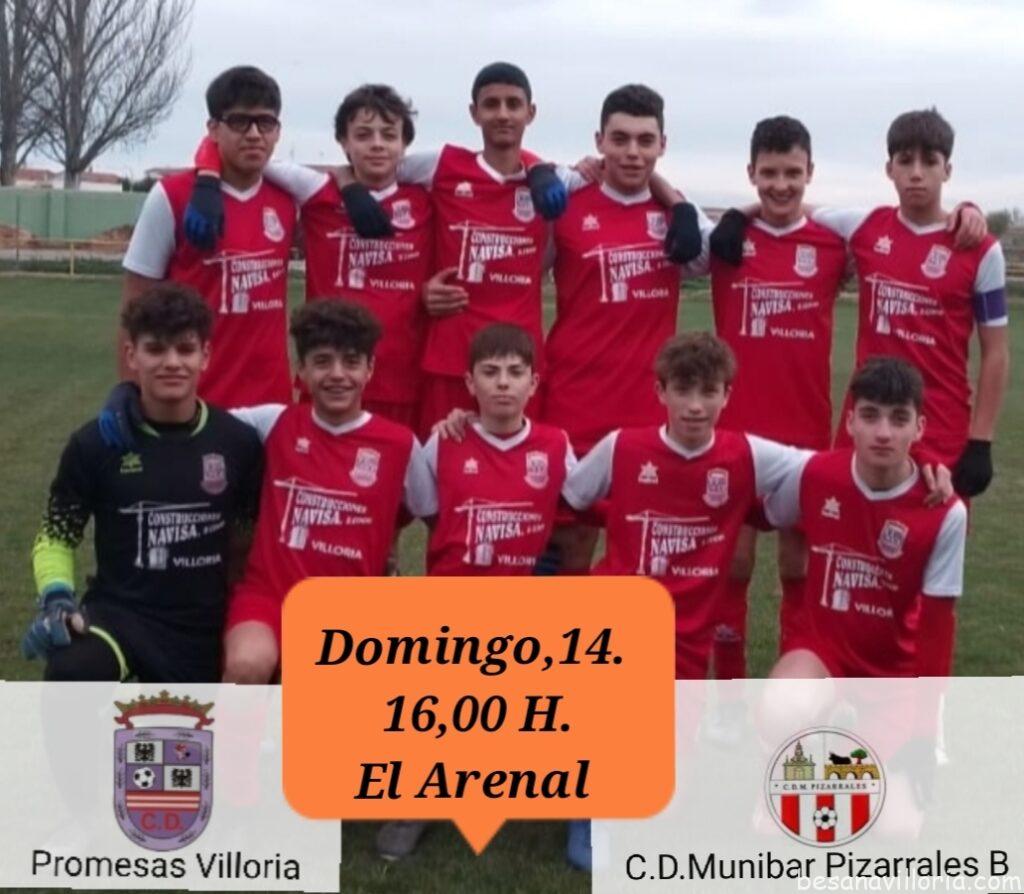 Vuelve la actividad también para el Promesas Villoria. Mañana domingo, a las 16,00 en el Arenal, reciben al C.D. Munibar Pizarrales B, séptimo clasificado.