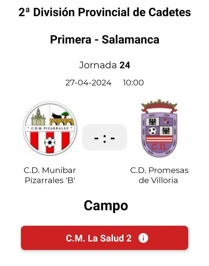 Partido tempranero el que disputará mañana sábado el Promesas Villoria frente al Munibar Pizarrales. Sin nada que perder, es otra buena oportunidad para divertirse y sacar algo positivo.