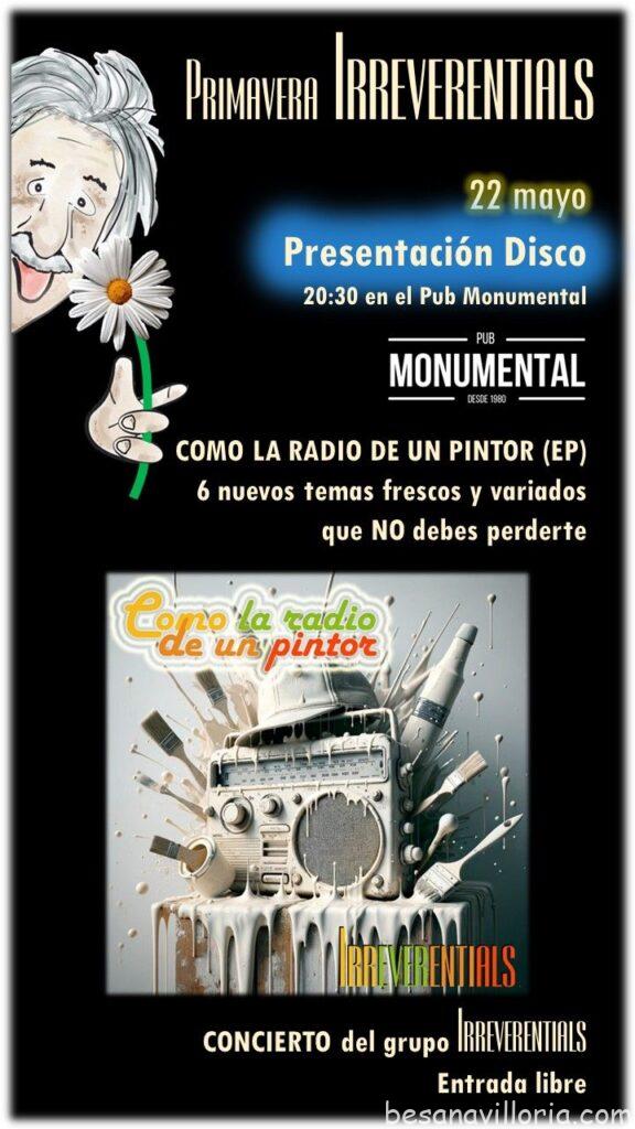 «El próximo miércoles 22 a las 20:30, en el Pub Monumental de Avda Portugal 157, presentamos nuestro nuevo disco COMO LA RADIO DE UN PINTOR. Nos encantará compartir contigo ese momento. Te esperamos.»