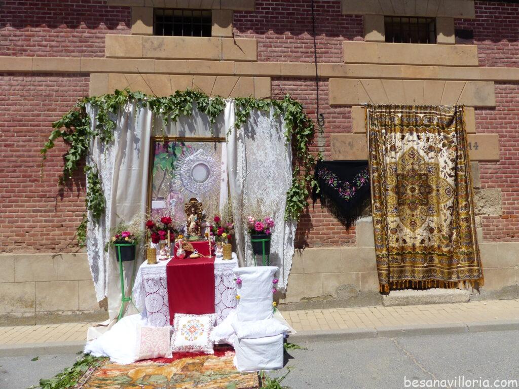 Los niños y niñas que han tomado su primera comunión este año, cumplieron con la tradición de acompañar al Santísimo en procesión, parando en los altares que había a lo largo del recorrido para depositar los tradicionales pétalos de flores.