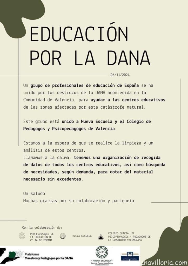 El jueves pasado por mediación de Ana Sandin, villoreja de cuna, se pusieron en contacto con el Ayuntamiento para ver si nos queriamos adherir a la Campaña de recogida de Material Escolar para ayudar a los colegios afectados por la DANA.