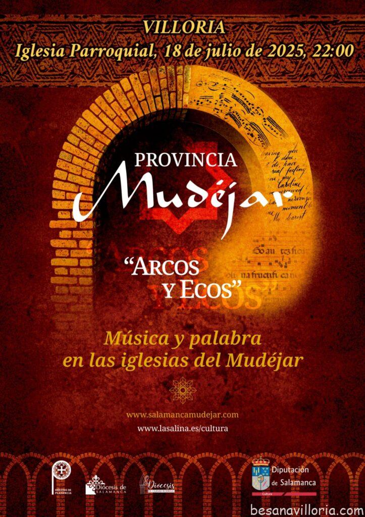«El proyecto Provincia Mudéjar, una iniciativa que combina arte, música, poesía y teatro en los singulares templos mudéjares repartidos por pequeños municipios de la provincia. El objetivo es doble: poner en valor este patrimonio histórico-artístico y fomentar el turismo cultural y religioso en las zonas rurales. «Arcos y Ecos» es un ciclo de recitales poético-musicales teatralizados que se desarrollará en espacios sagrados donde el arte mudéjar ¿en ladrillo, madera o piedra¿ da testimonio de siglos de convivencia cultural.»