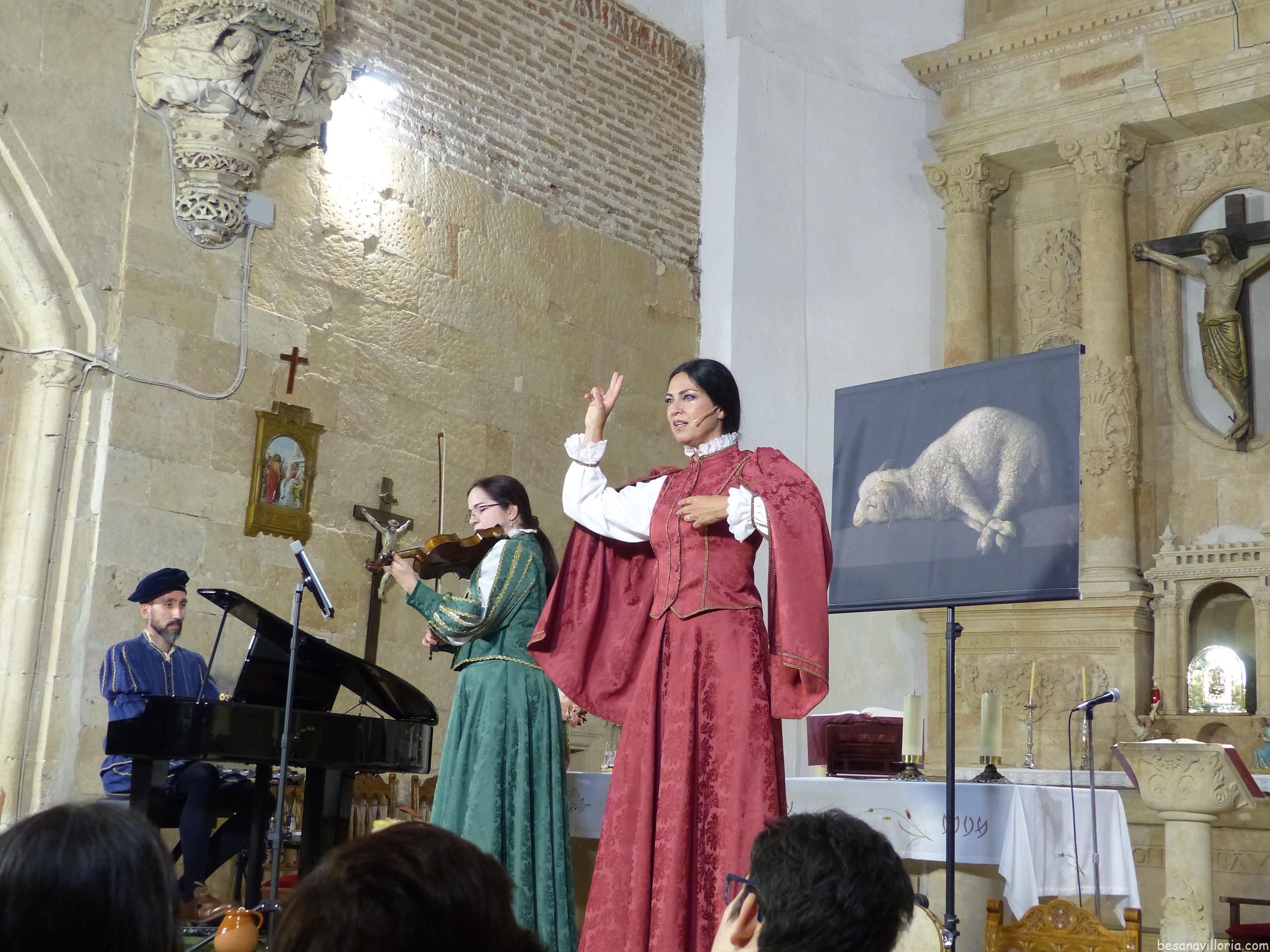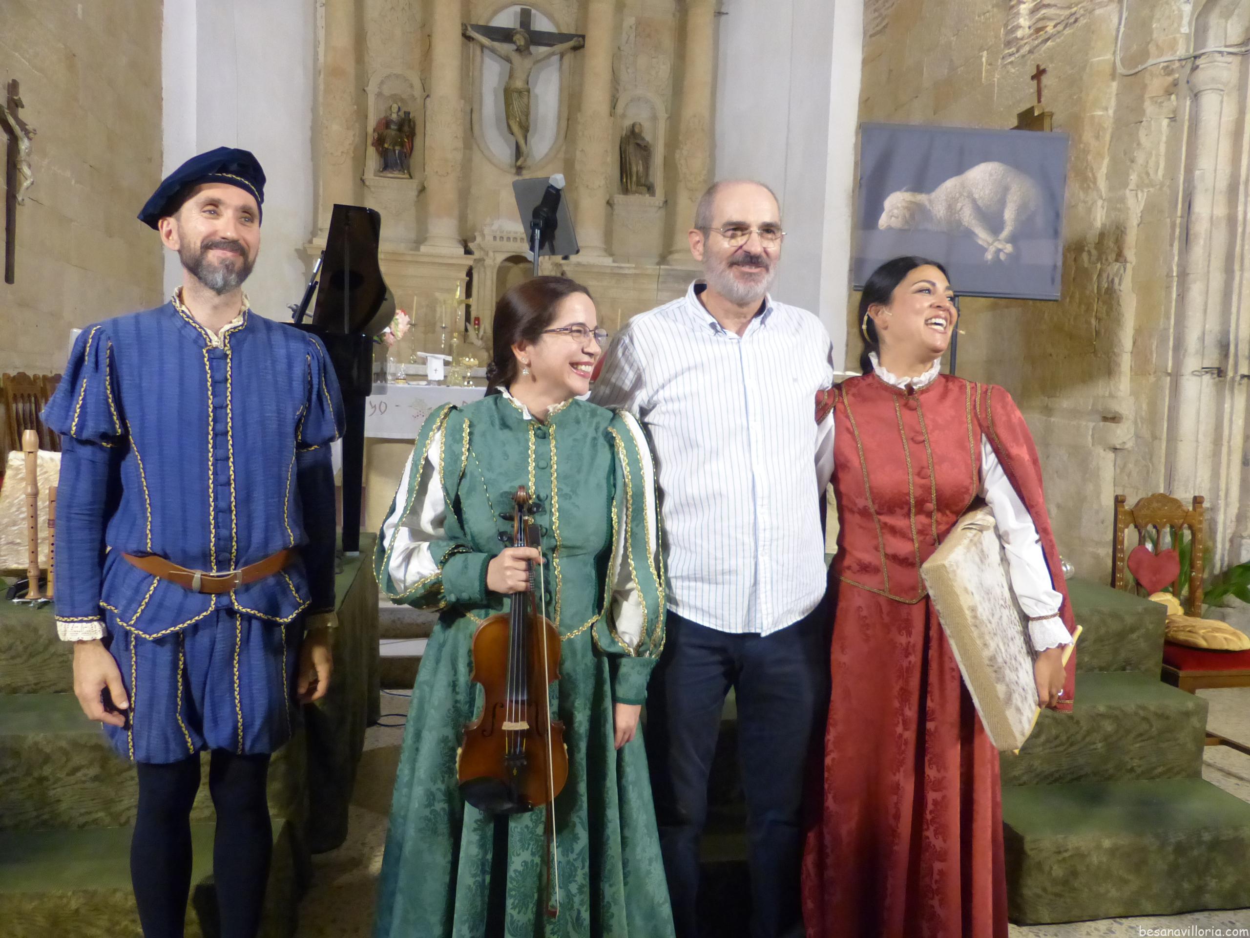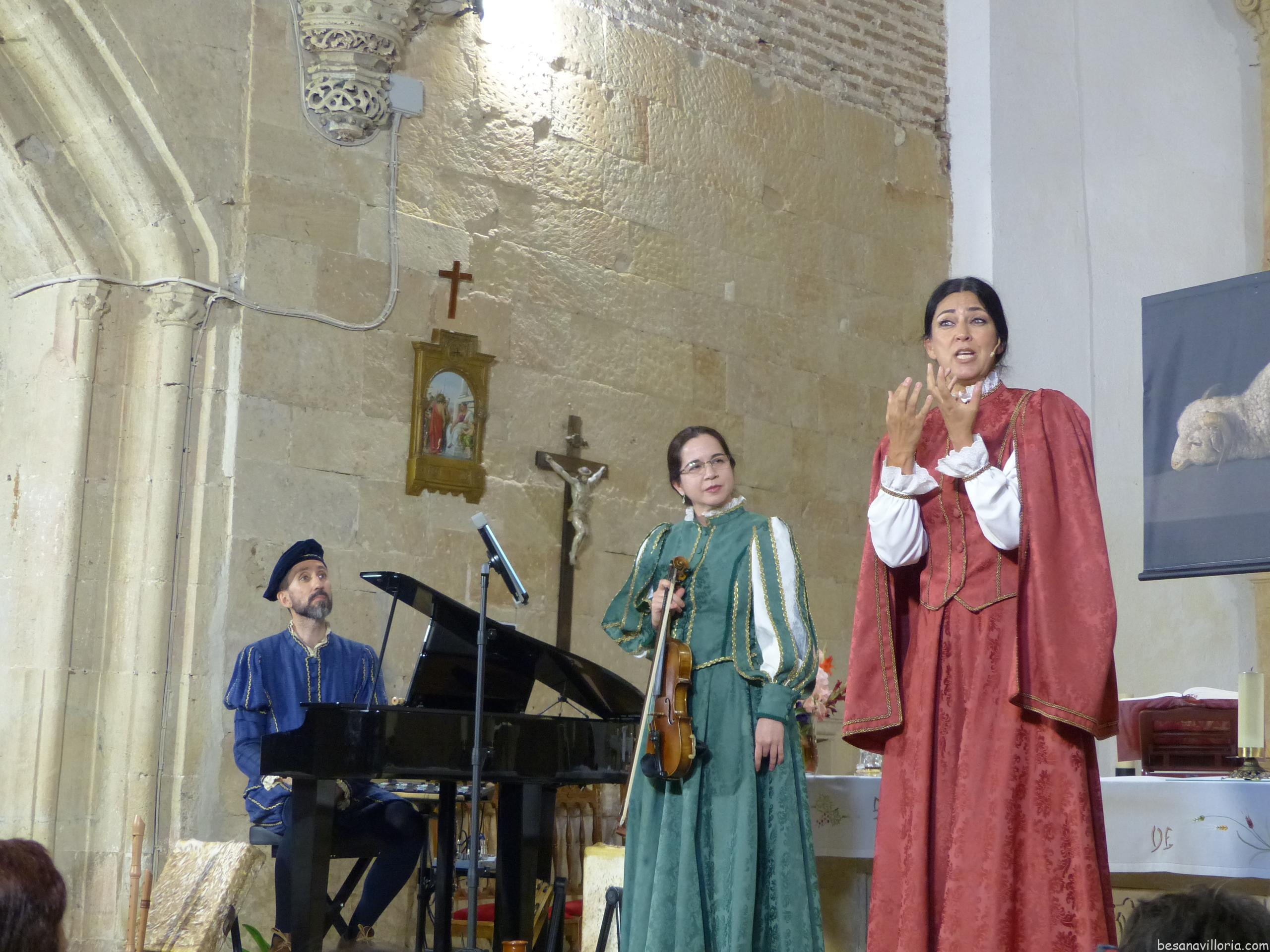 Tres artistas que durante una hora nos presentaron un diálogo entre música clásica y popular y versos de poetas que alguna vez transitaron por tierras salmantinas. Entre ellos se pudo reconocer a León Felipe, García Lorca, Santa Teresa de Jesús, Fray Luis de León, Gabriel y Galán… También se incluyó un poema de José Luis Puerto, nacido en La Alberca. Todo ello dentro del precioso marco de nuestra iglesia románica-mudéjar.